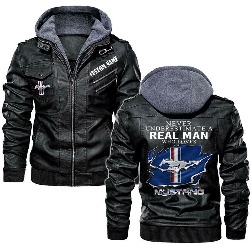 Never Underestimate A Real Man Who Loves Ford Mustang Hooded Leather Jacket