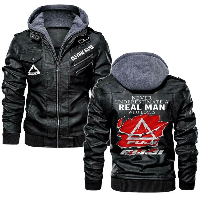 Never Underestimate A Real Man Who Loves Fuji Bikes Hooded Leather Jacket