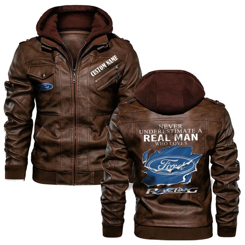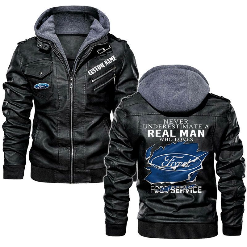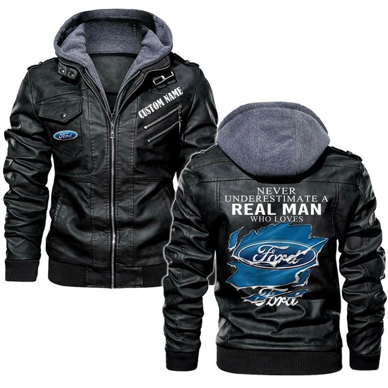 Never Underestimate A Real Man Who Loves Ford Hooded Leather Jacket