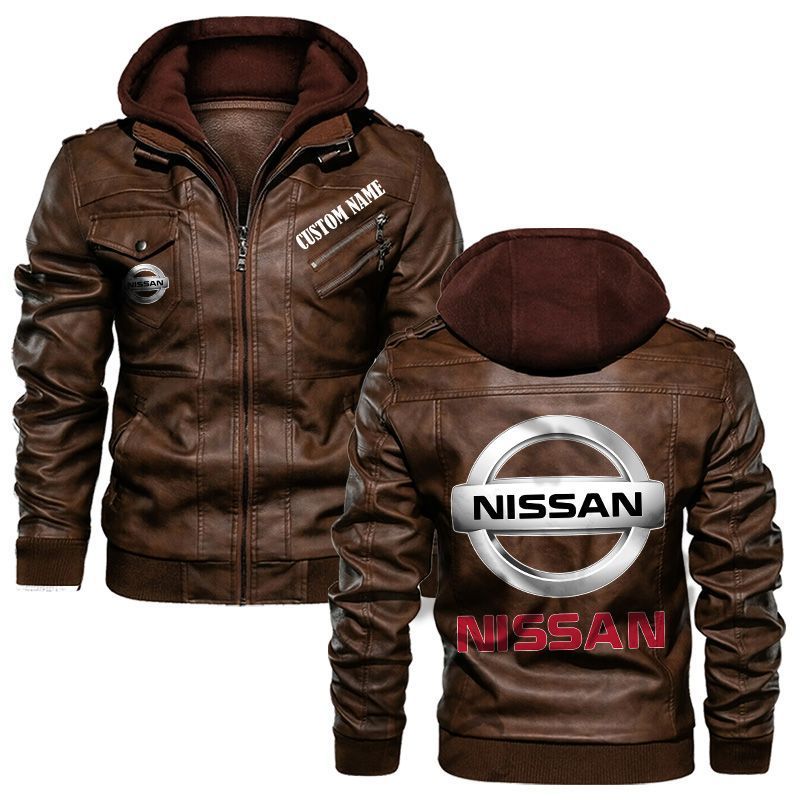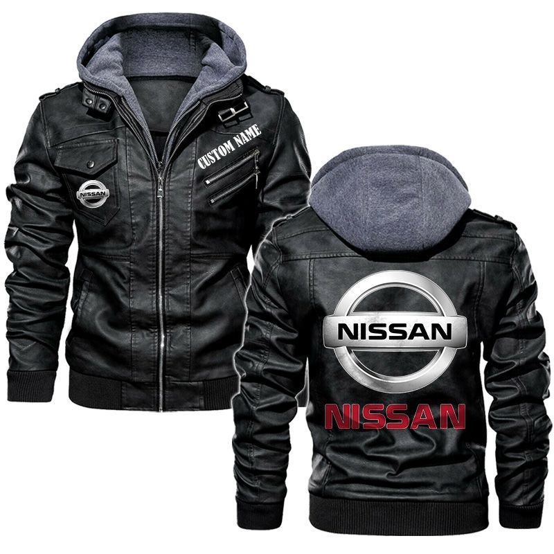 Nissan Custom Name Skull Biker Car Driver Personalized Hooded Leather Jacket For Men Women