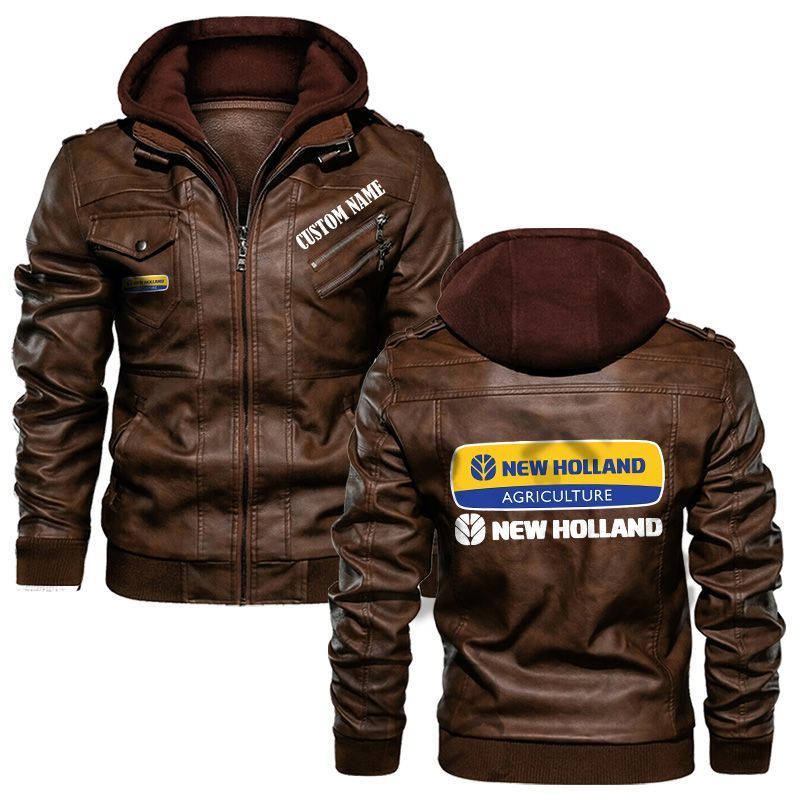 New Holland Agriculture Hooded Leather Jacket For Men Women