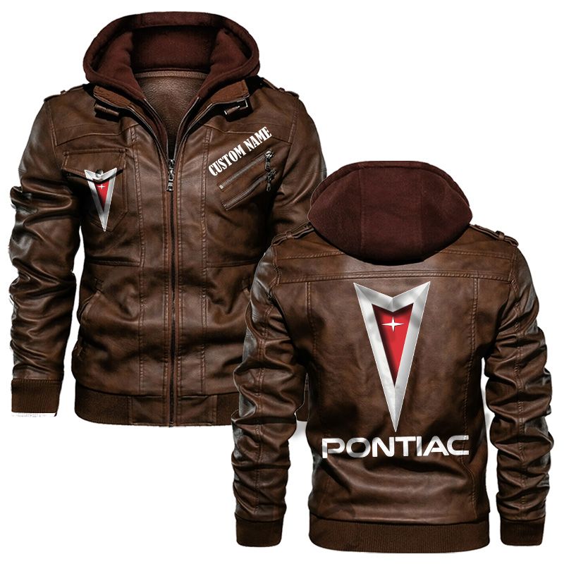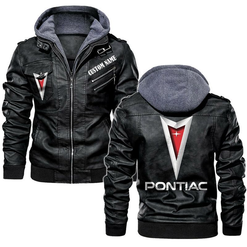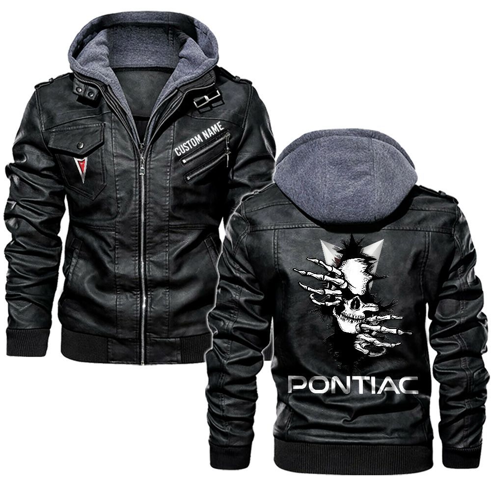 Pontiac Custom Name Skull Biker Car Driver Personalized Hooded Leather Jacket For Men Women