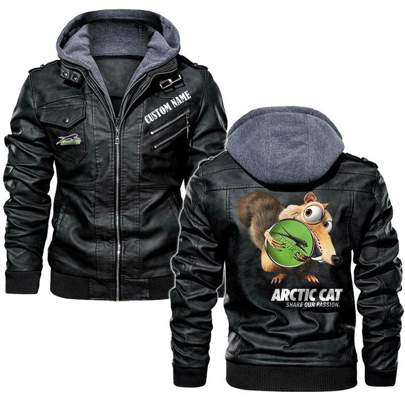 Scrat Squirrel In Ice Age Arctic cat Hooded Leather Jacket