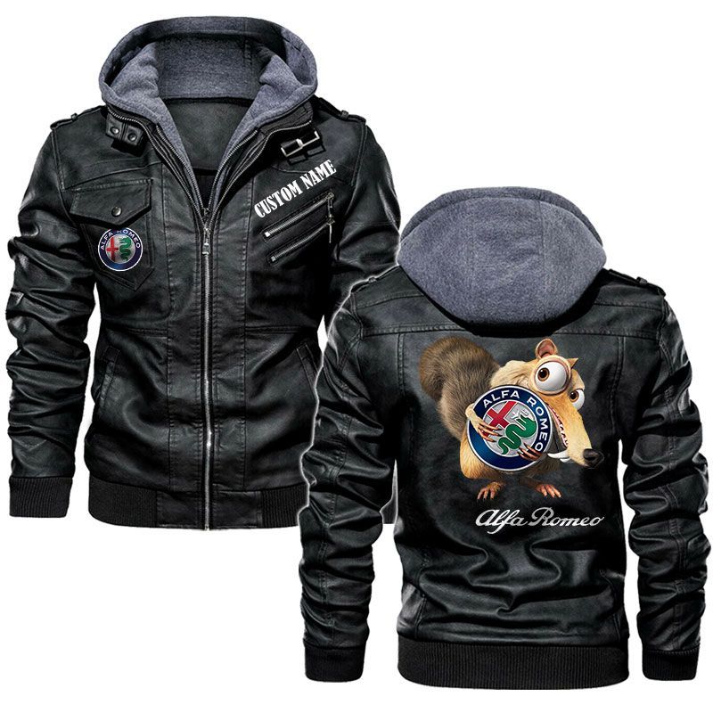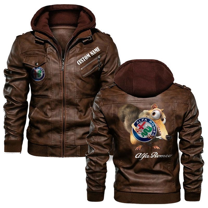 Scrat Squirrel In Ice Age Alfa Romeo Hooded Leather Jacket