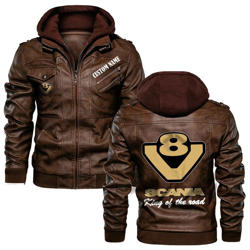 Skoda Golden Logo Custom Hooded Leather Jacket Black quantity