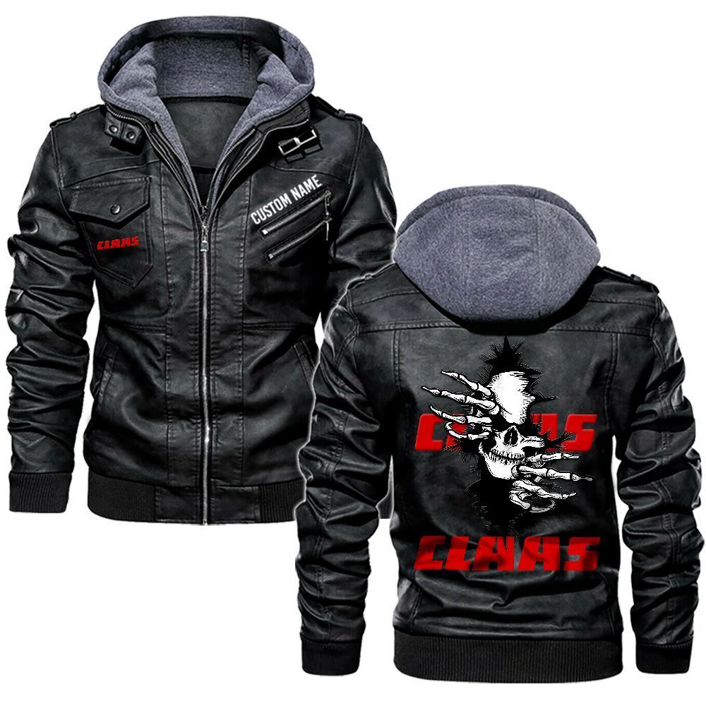 Claas Custom Name Skull Biker Car Driver Personalized Hooded Leather Jacket For Men Women