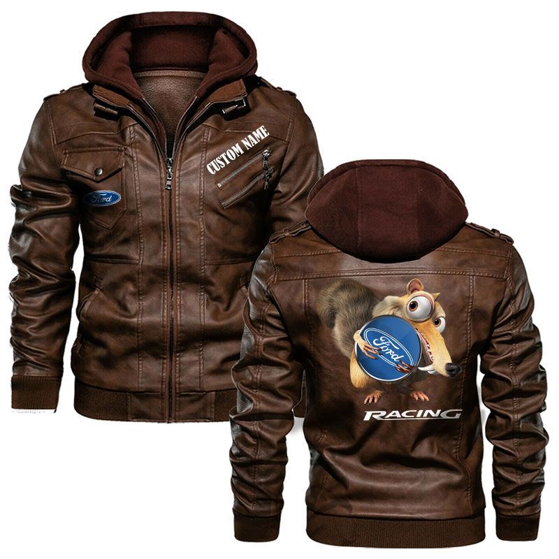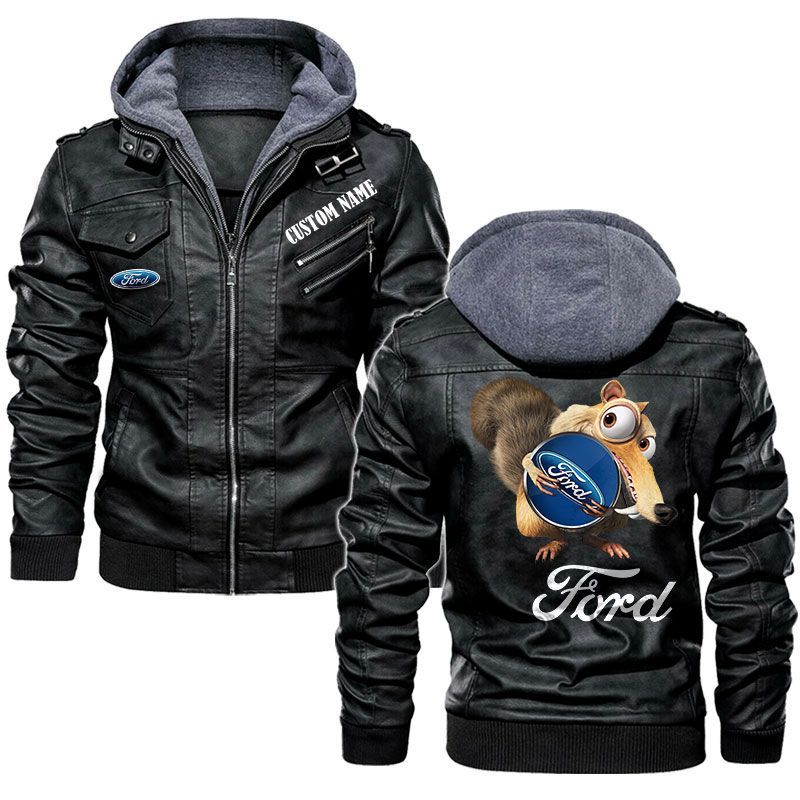 Scrat Squirrel In Ice Age Ford Mustang Hooded Leather Jacket