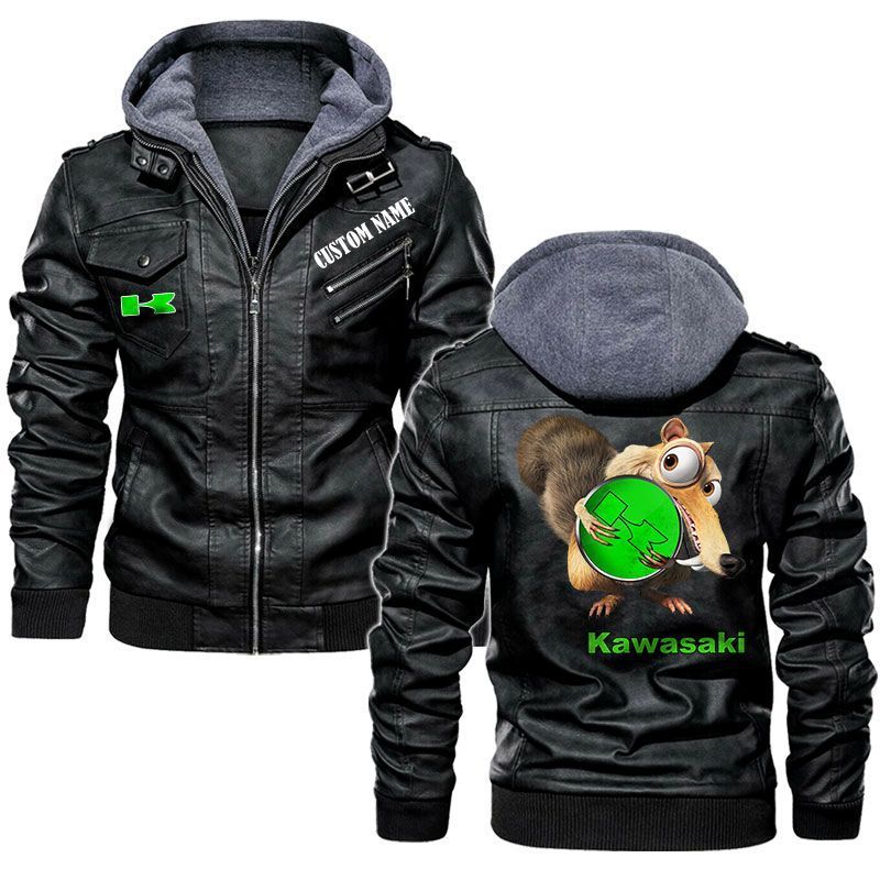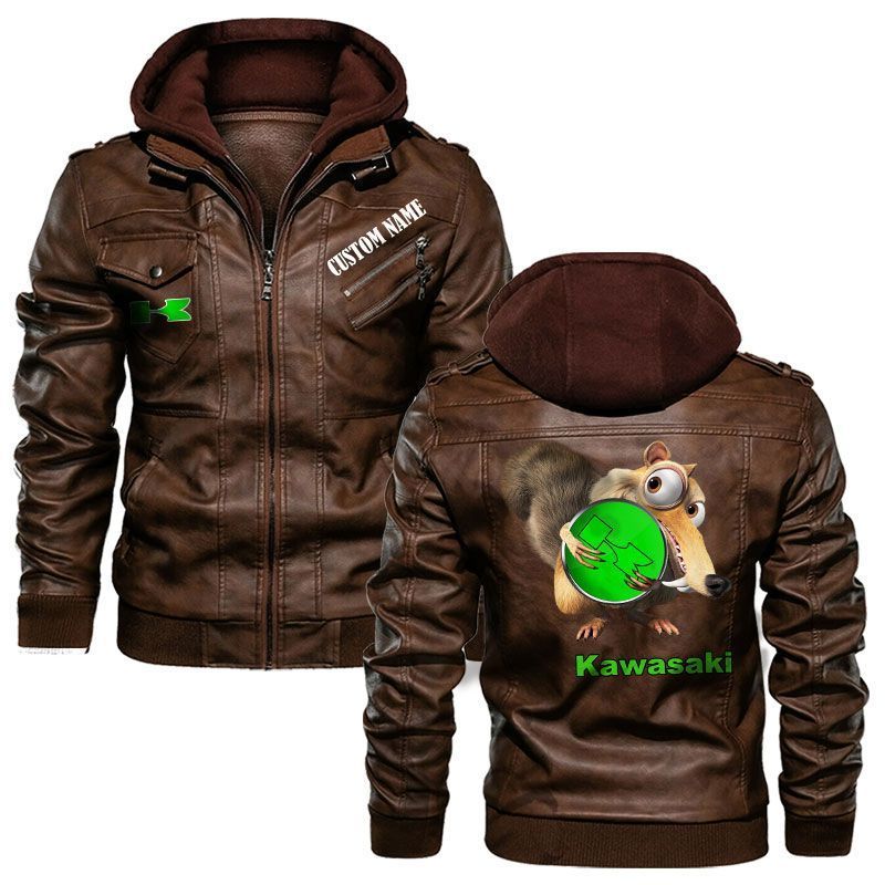 Scrat Squirrel In Ice Age Kawasaki Hooded Leather Jacket