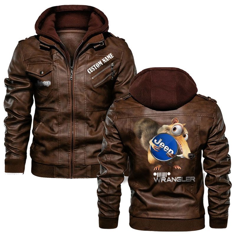 Scrat Squirrel In Ice Age Jeep wrangler Hooded Leather Jacket