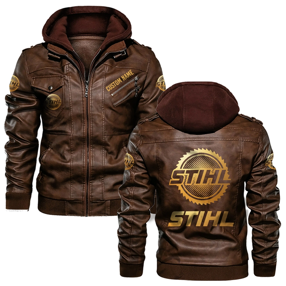 Stihl Golden Logo Custom Hooded Leather Jacket Brown