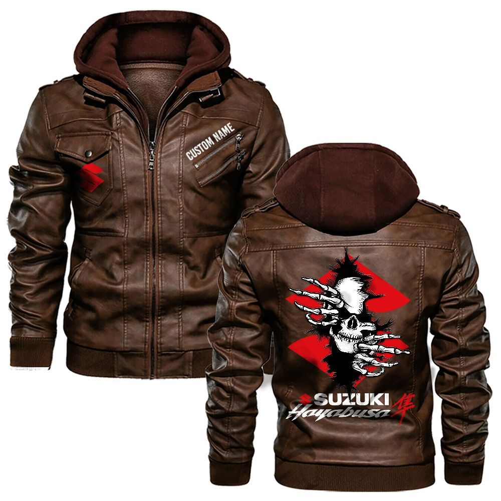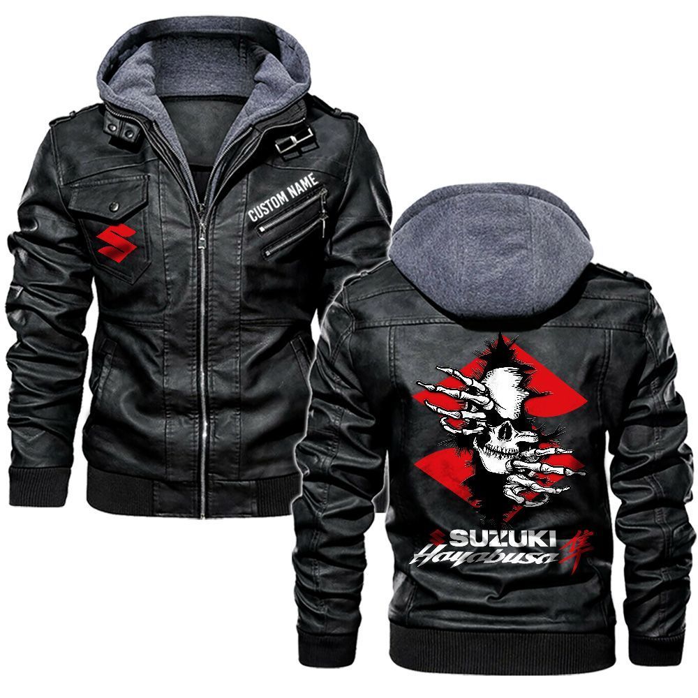 Suzuki Hayabusa Custom Name Skull Biker Car Driver Personalized Hooded Leather Jacket For Men Women