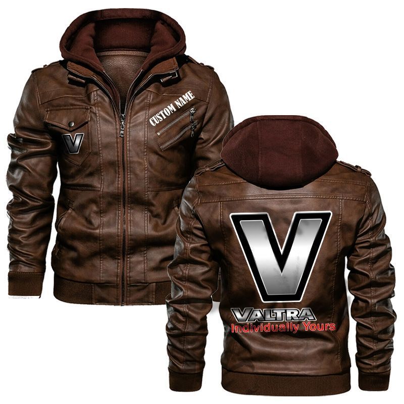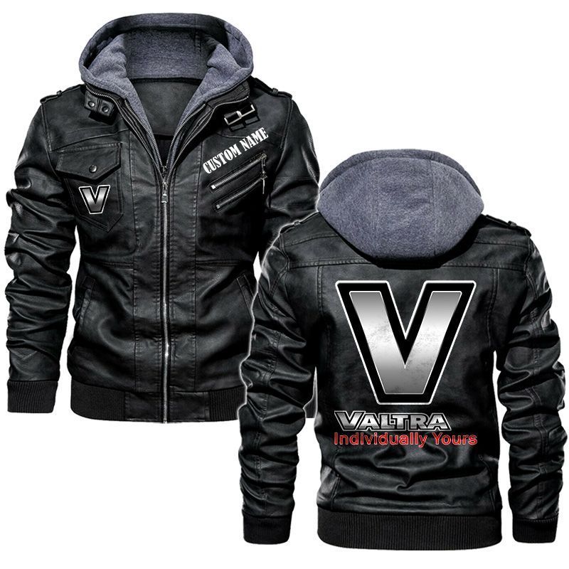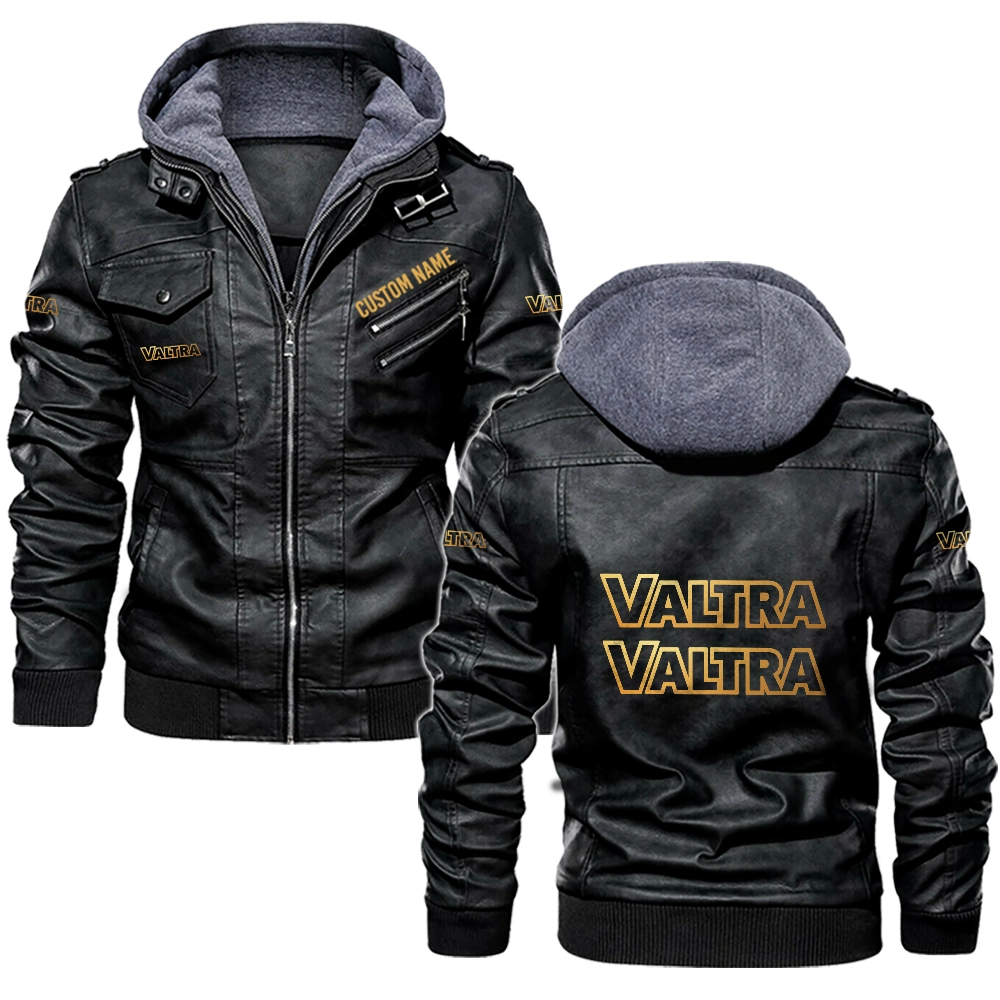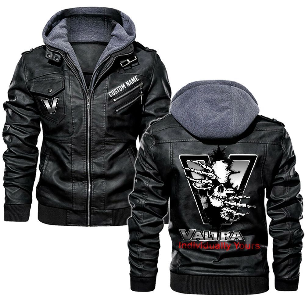 Valtra Custom Name Skull Biker Car Driver Personalized Hooded Leather Jacket For Men Women