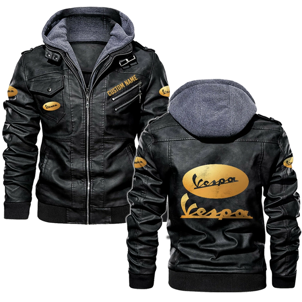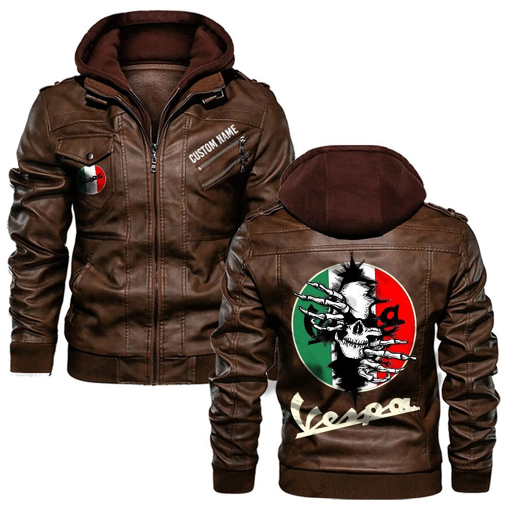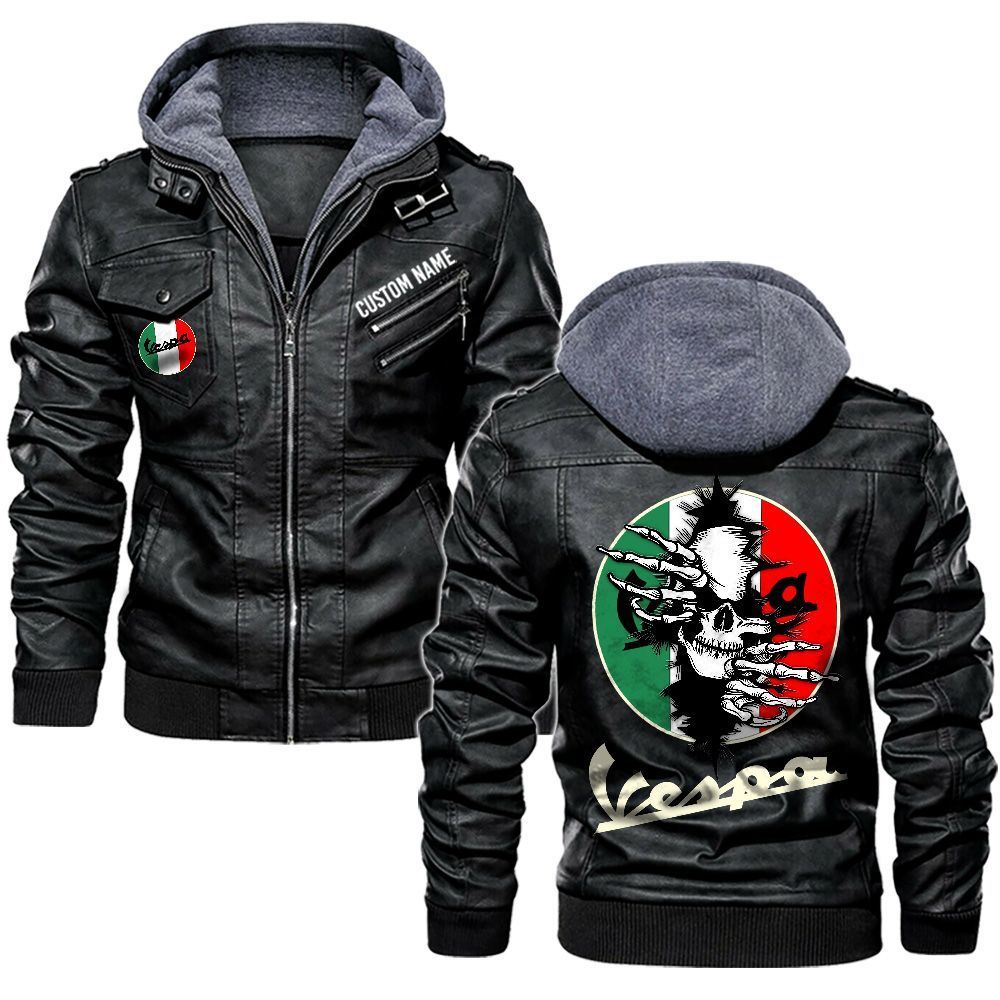 Vespa Custom Name Skull Biker Car Driver Personalized Hooded Leather Jacket For Men Women