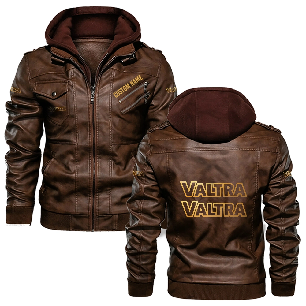 Valtra Golden Logo Custom Hooded Leather Jacket Brown