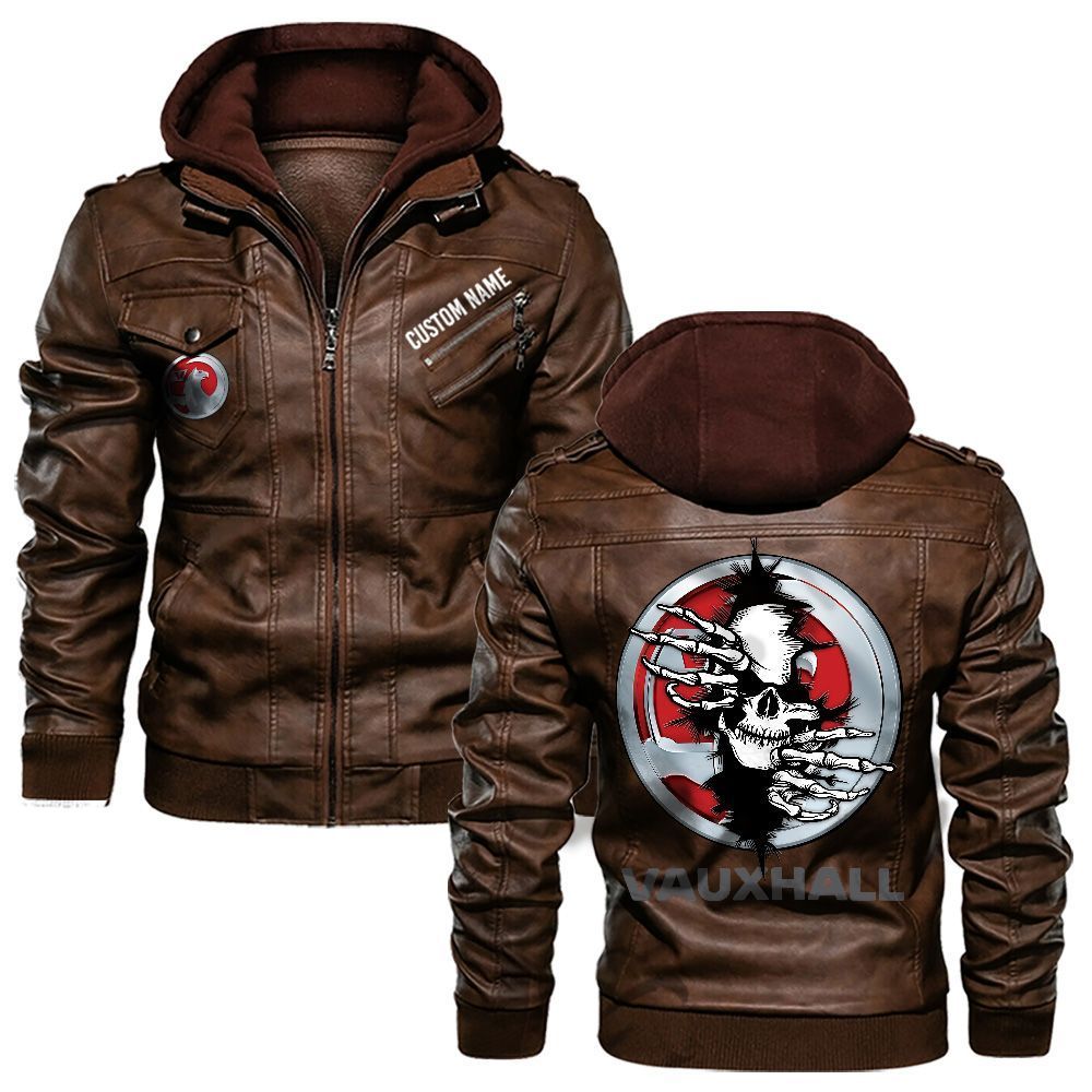 Vauxhall Astra Custom Name Skull Biker Car Driver Personalized Hooded Leather Jacket For Men Women