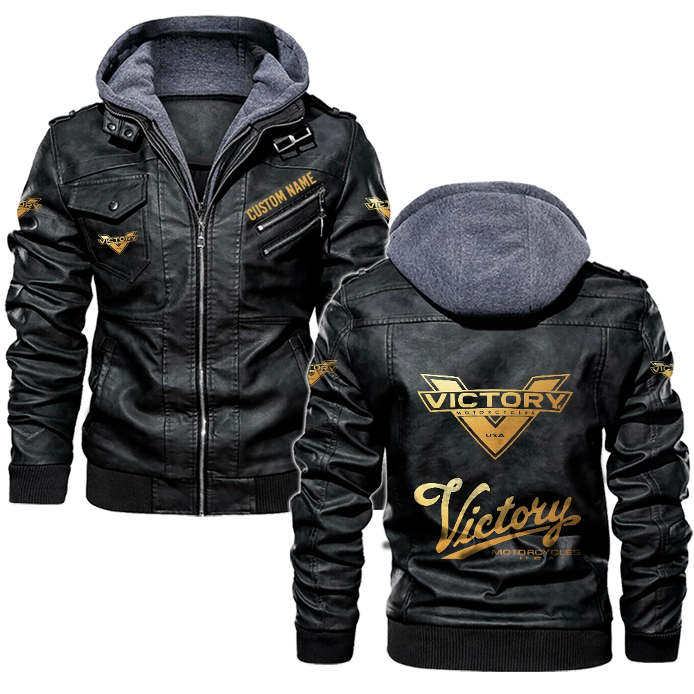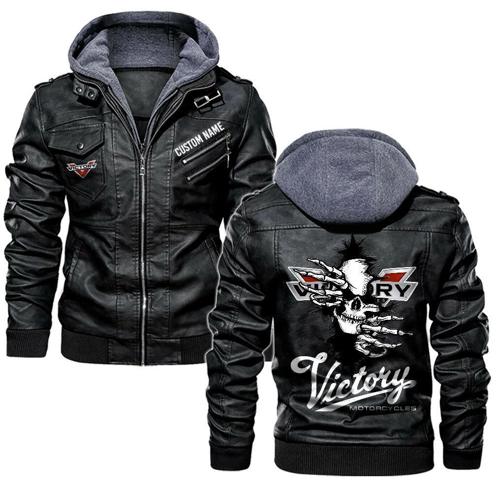 Victory Motorcycles Custom Name Skull Biker Car Driver Personalized Hooded Leather Jacket For Men Women