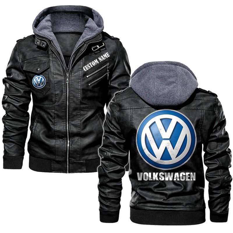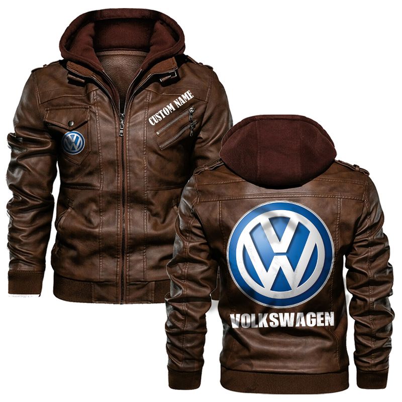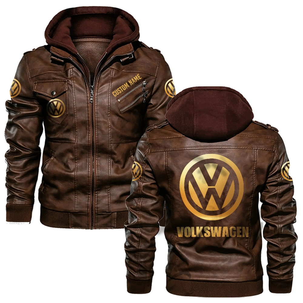 Volkswagen Group Hooded Leather Jacket For Men Women