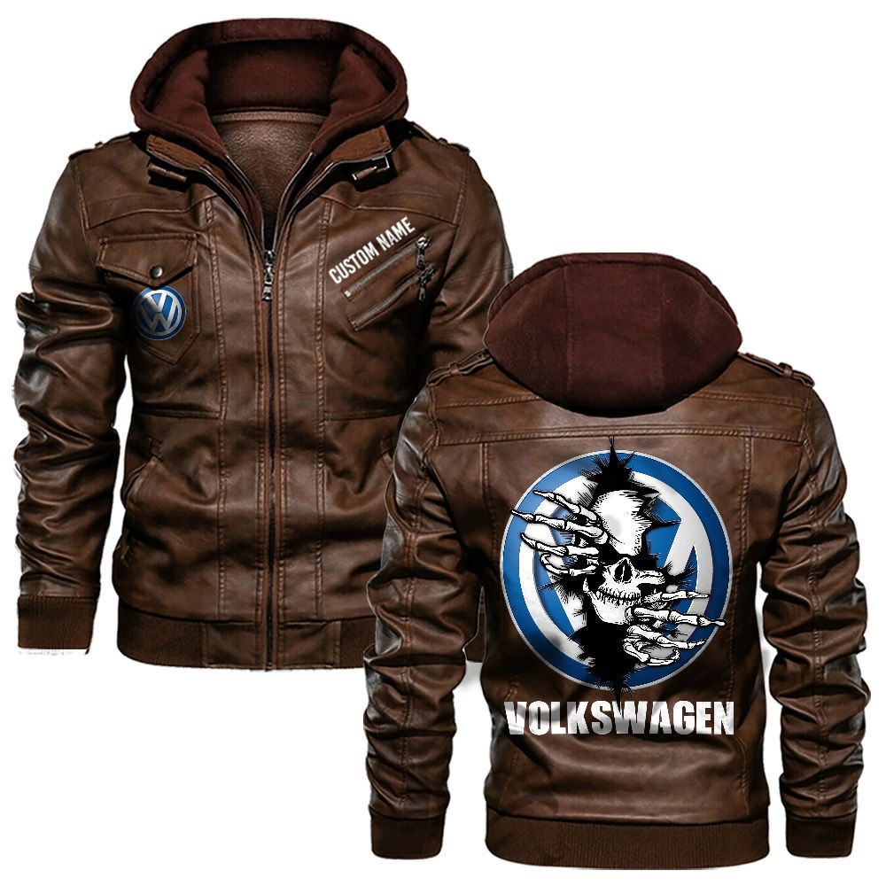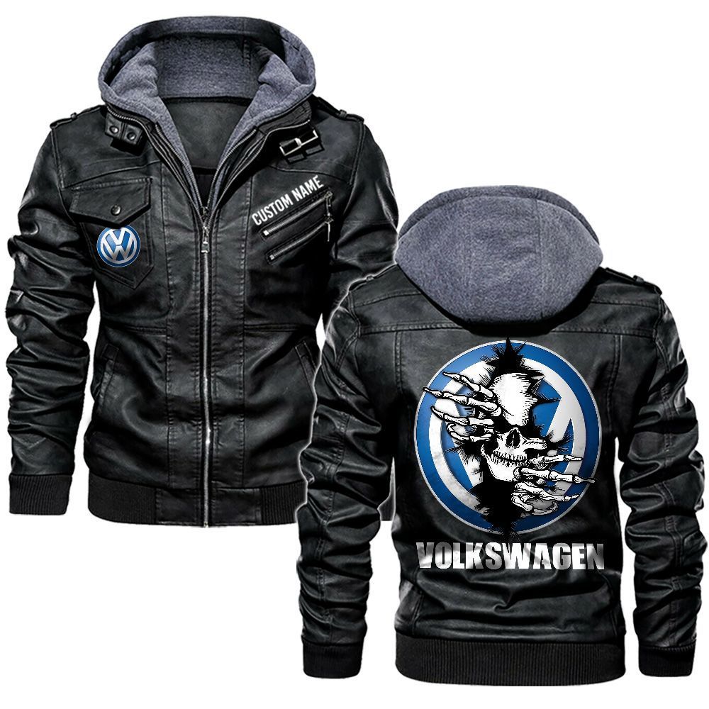 Volkswagen Custom Name Skull Biker Car Driver Personalized Hooded Leather Jacket For Men Women