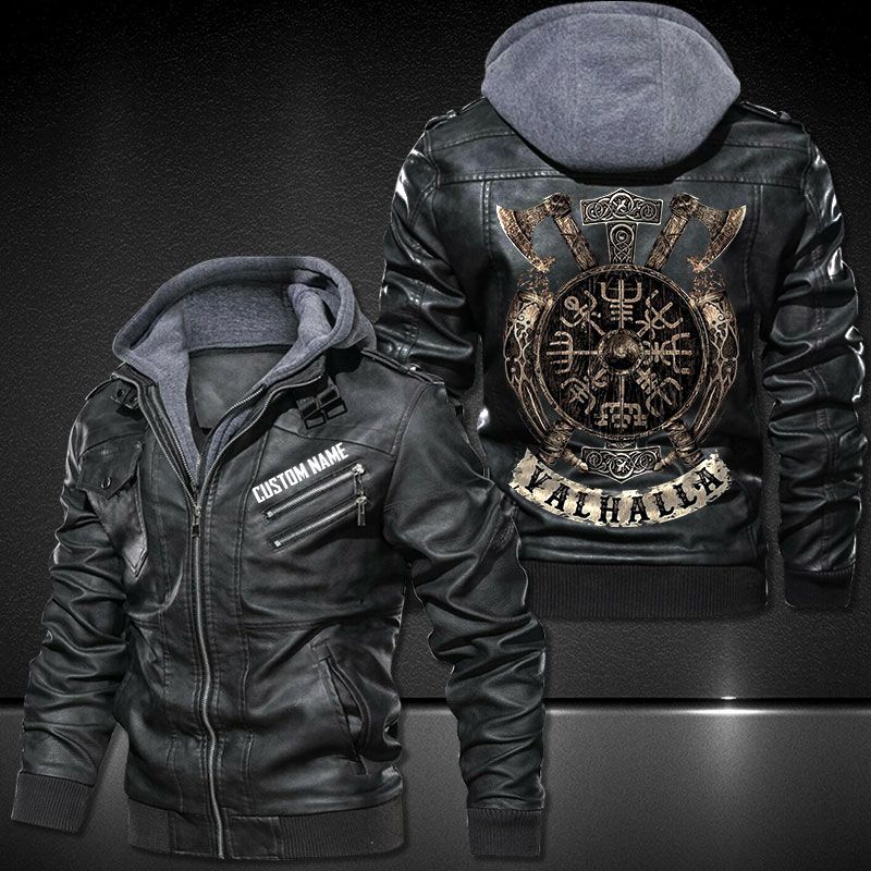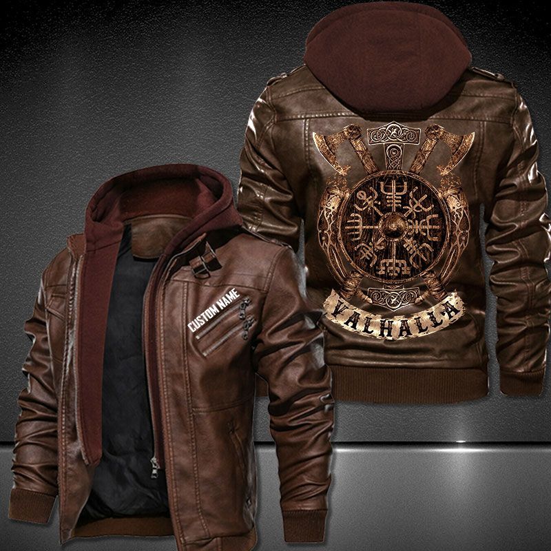 Viking Vegvisir Shield Hooded Leather Jacket For Men