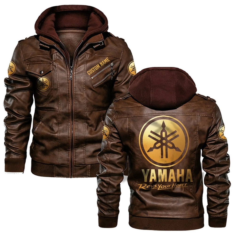 Yamaha Golden Logo Custom Hooded Leather Jacket Brown