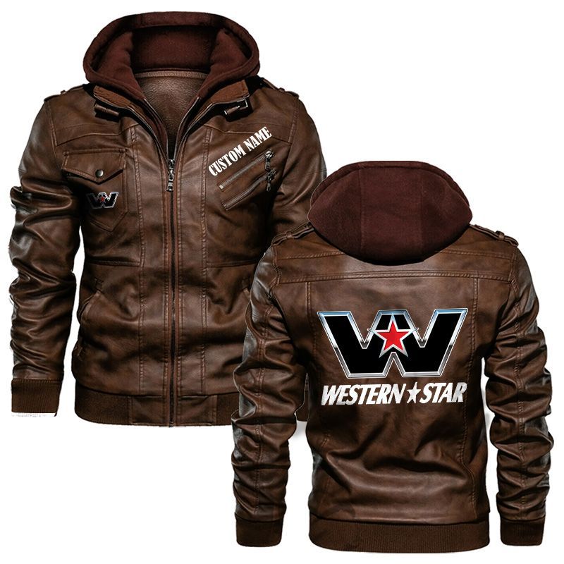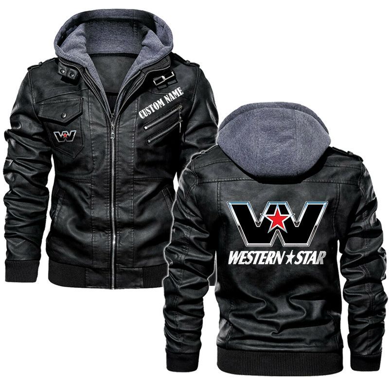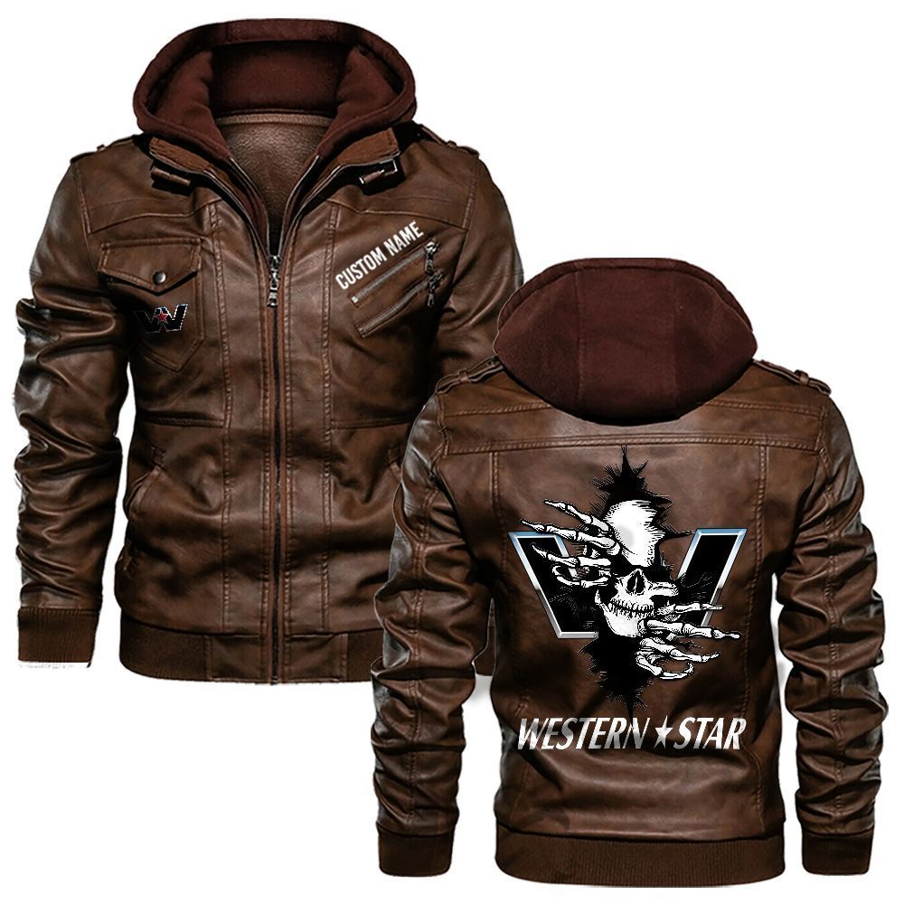 Wester Star Custom Name Skull Biker Car Driver Personalized Hooded Leather Jacket For Men Women