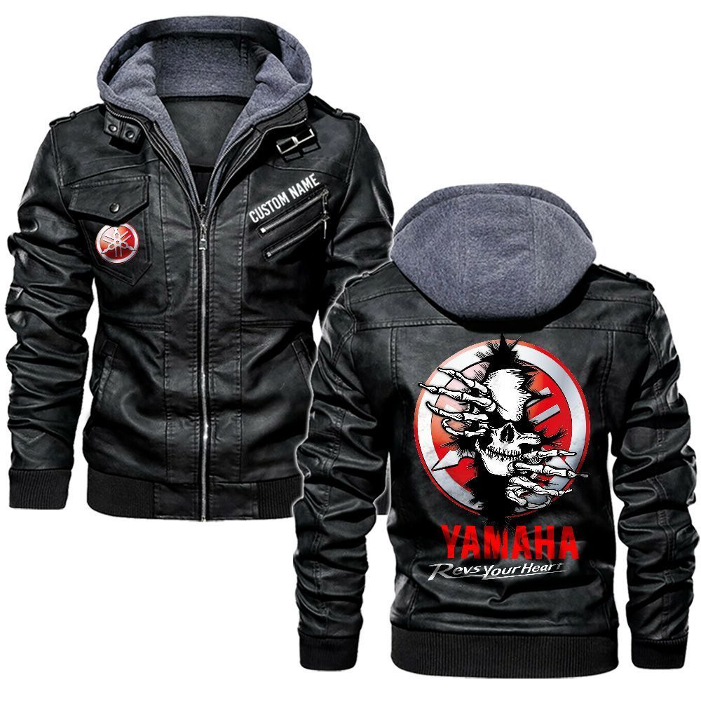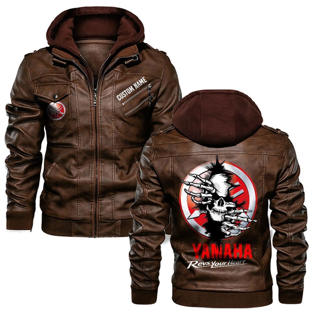 Yamaha Custom Name Skull Biker Car Driver Personalized Hooded Leather Jacket For Men Women