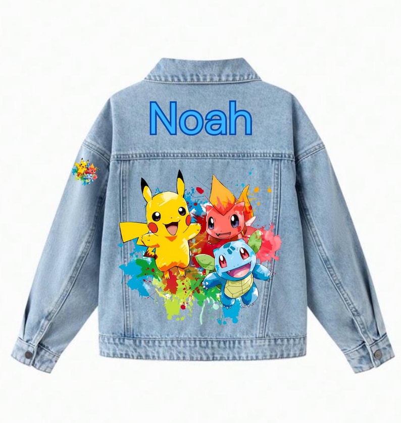 Custom Printed Kids Denim Jacket: Cartoon Birthday Outfit