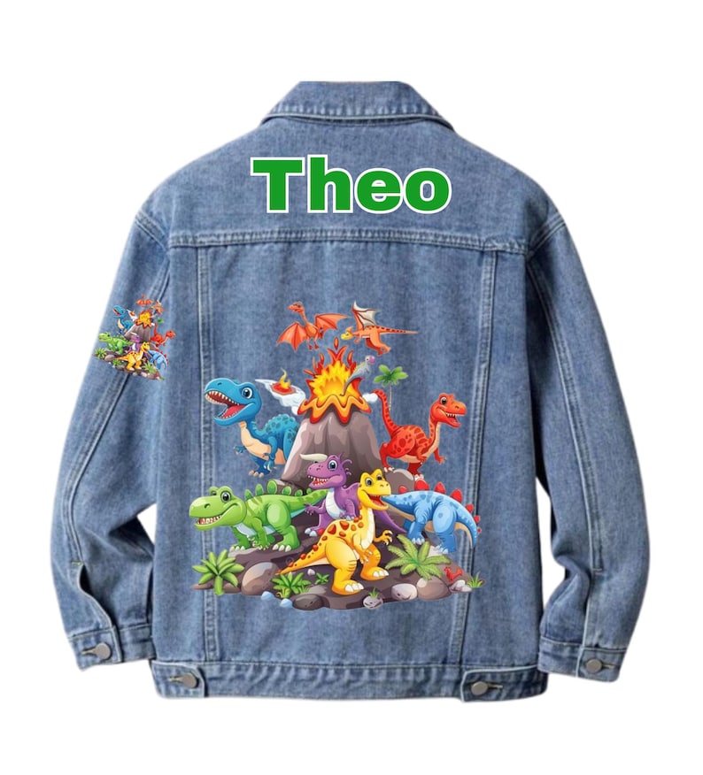 Dinosaur Custom Name Denim Jacket For Kids