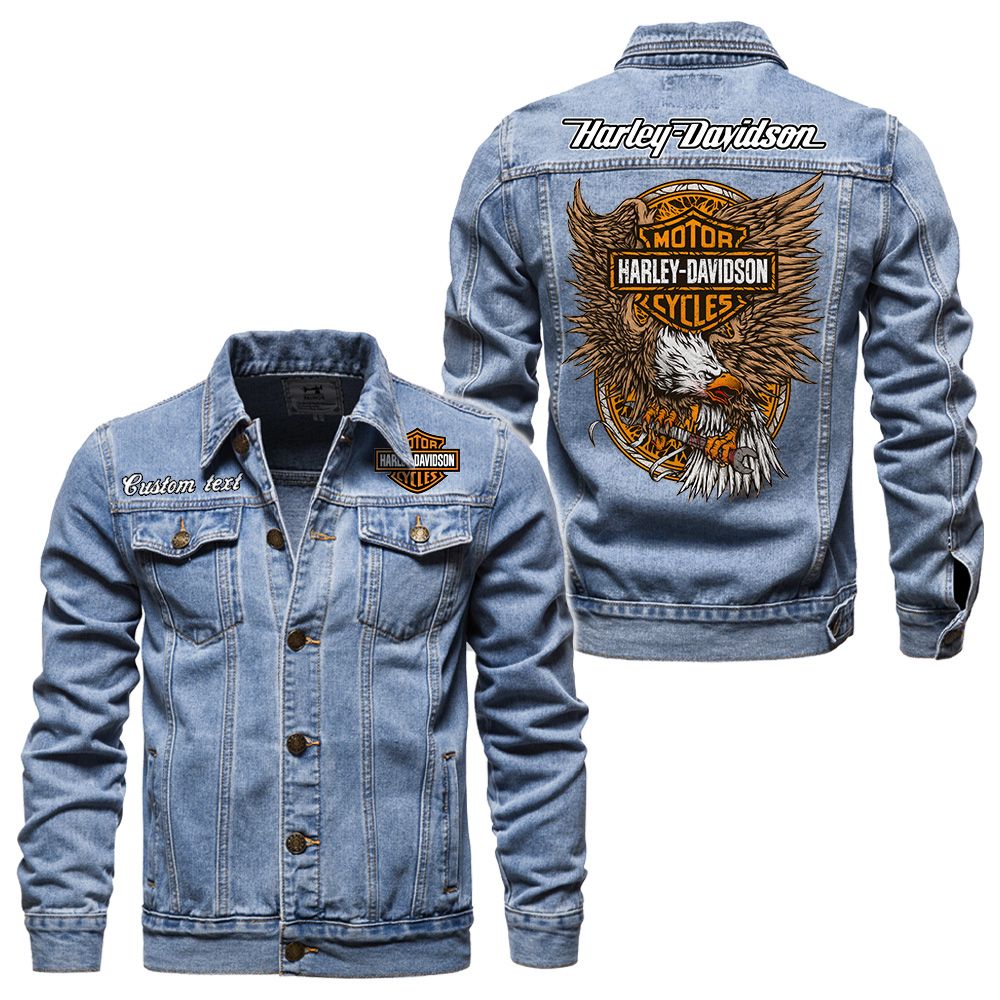 Harley Davidson Logo Car Or Motor Model Denim Jacket Casual Style