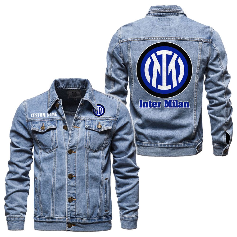 Inter Milan Logo Team Vintage Style Denim Jacket For Men