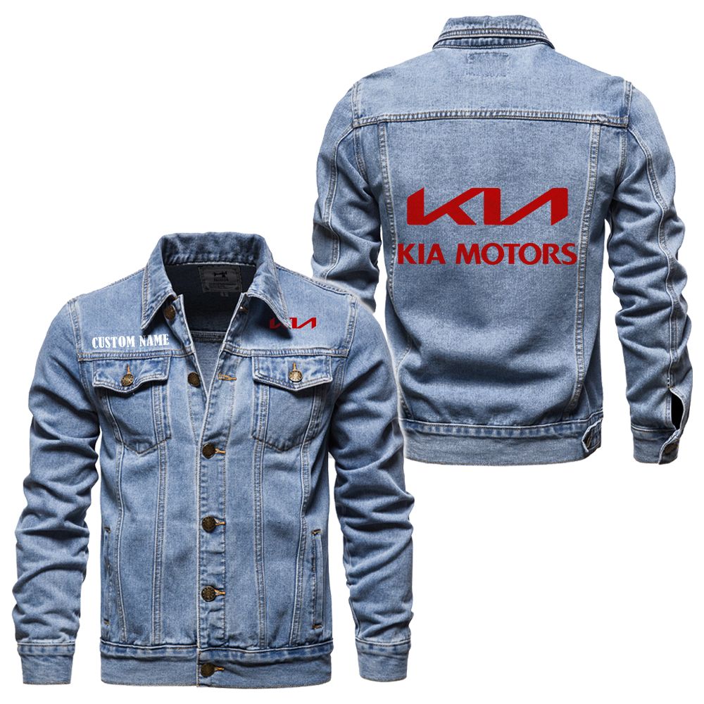 Kia Logo Car Or Motor Model Denim Jacket Streetwear Style