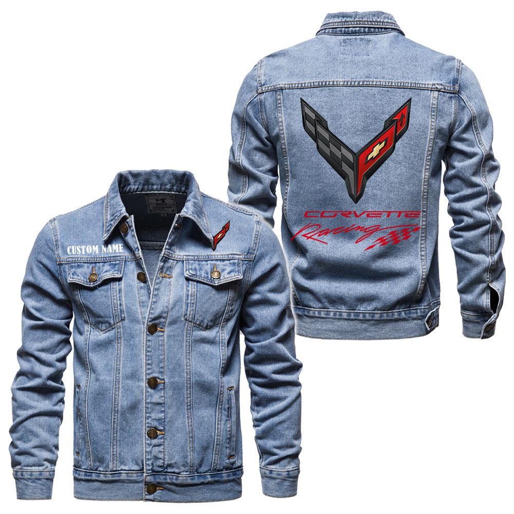 Corvette C8 Logo Car Or Motor Model Denim Jacket For Men