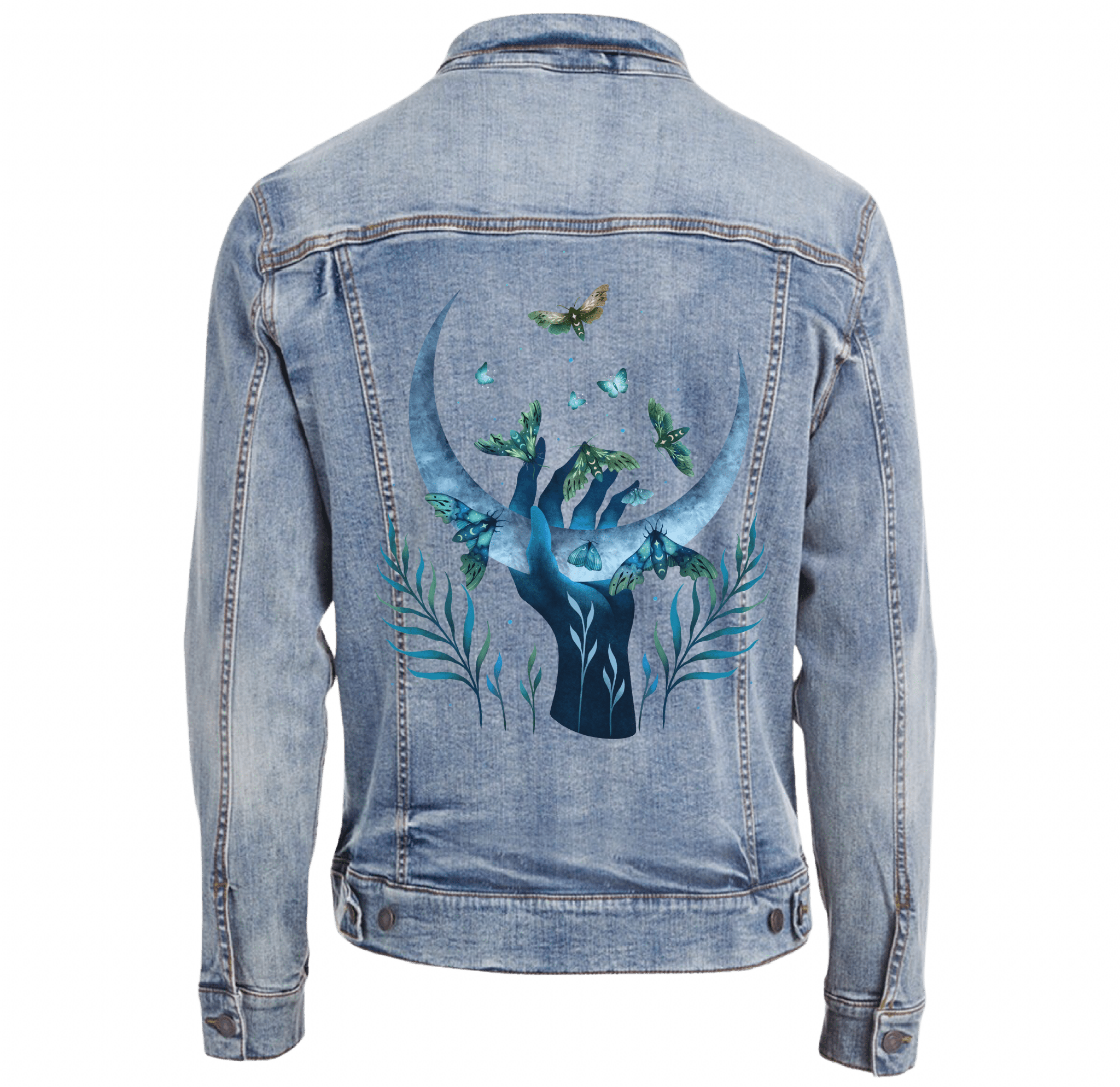 Moth Hand Denim Jacket For Men And Women
