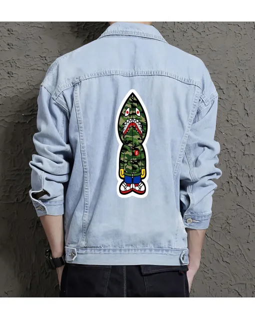 Bearbrick Camouflage Relaxed Fit Denim Jacket For Men And Women