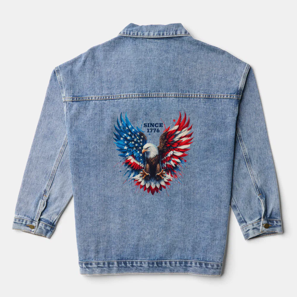 Personalized Patriotic Colors America Bold Eagle Denim Jacket Best Outerwear Gift