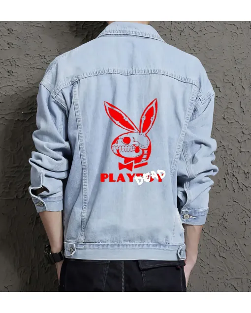 Playboy Logo Red Rabbit Casual Denim Jacket For Men And Women