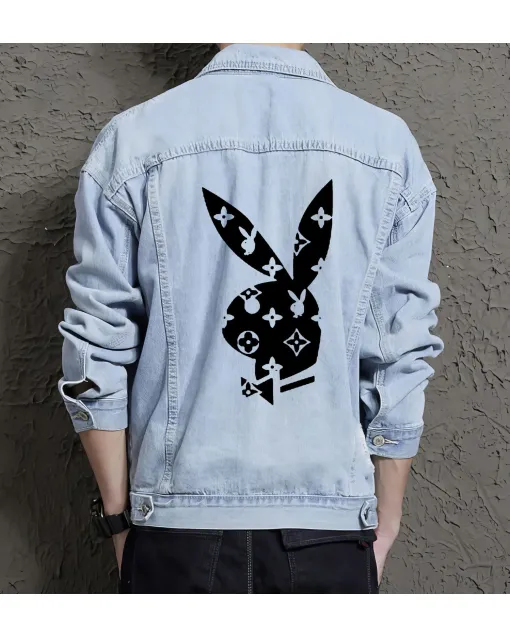 Playboy X Louis Vuitton Bunny Rabbit Street Style Denim Jacket For Men And Women