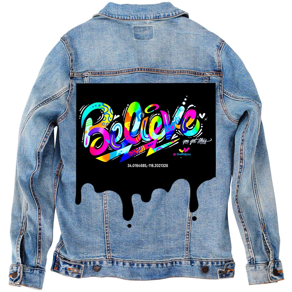 Believe I Am A Believer Warm Amber Portrait Denim Jacket