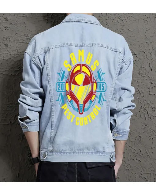 Samurai Denim Trucker Jacket Japanese Art Graphic Coat