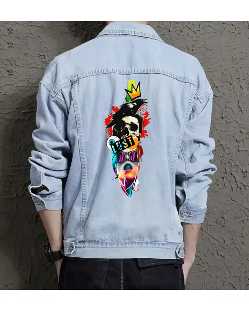 Skull And Crown Denim Jacket For Men And Women