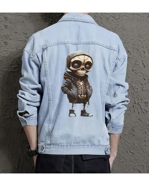 Skeleton Horror Graphic Casual Denim Jacket For Men And Women