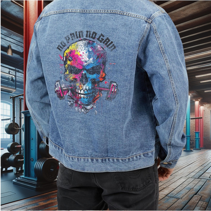 Skull Barbell Denim Jacket Best Outerwear For Men And Women
