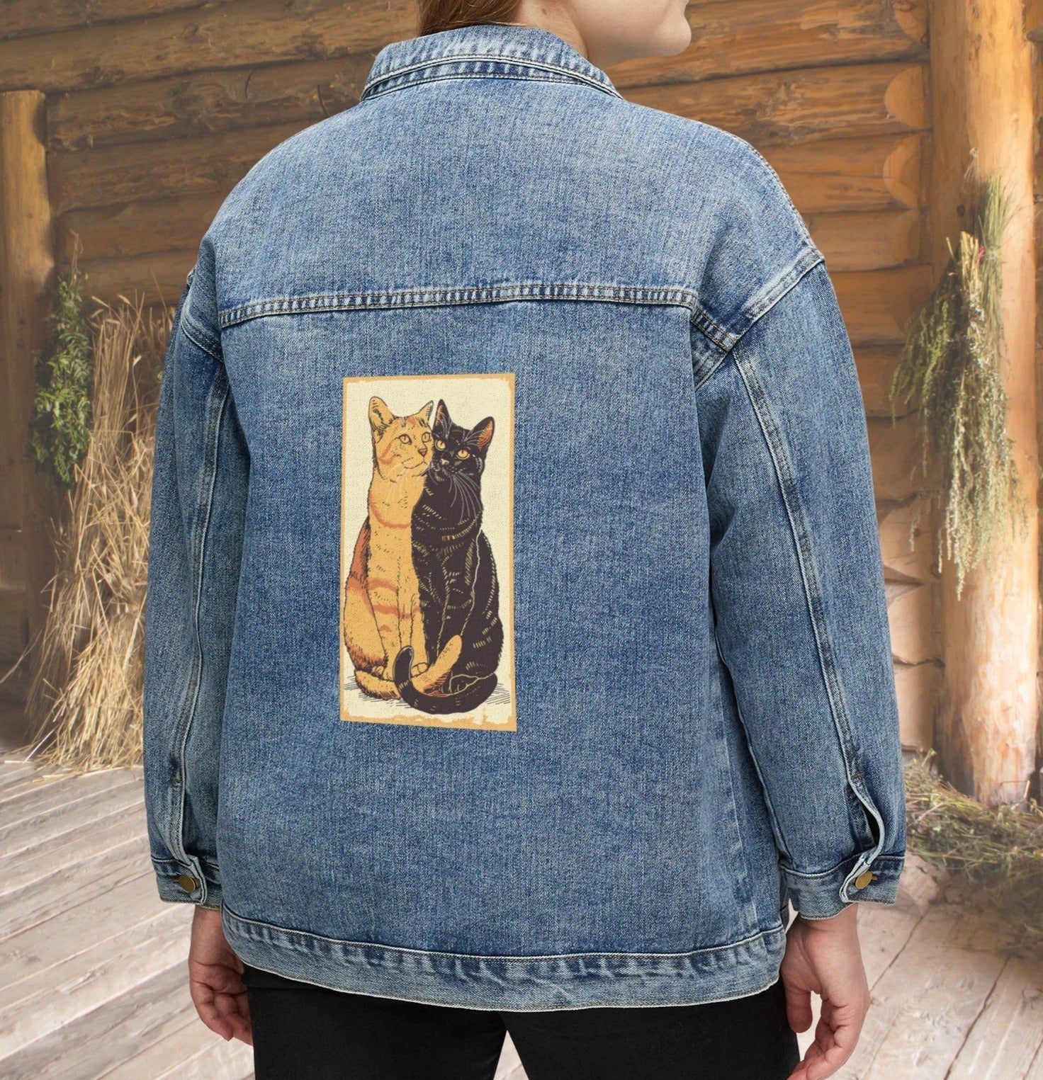 Black Cat And Tabby Cat Denim Jacket
