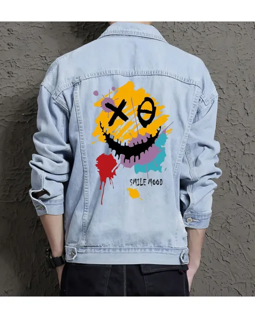 Smile Doodle Graphic Denim Jacket For Men And Women