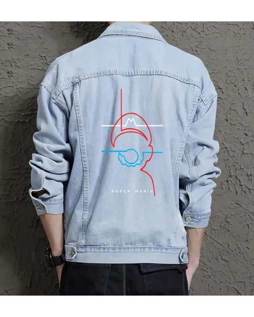 Super Mario Mini Graphic Denim Jacket For Men And Women