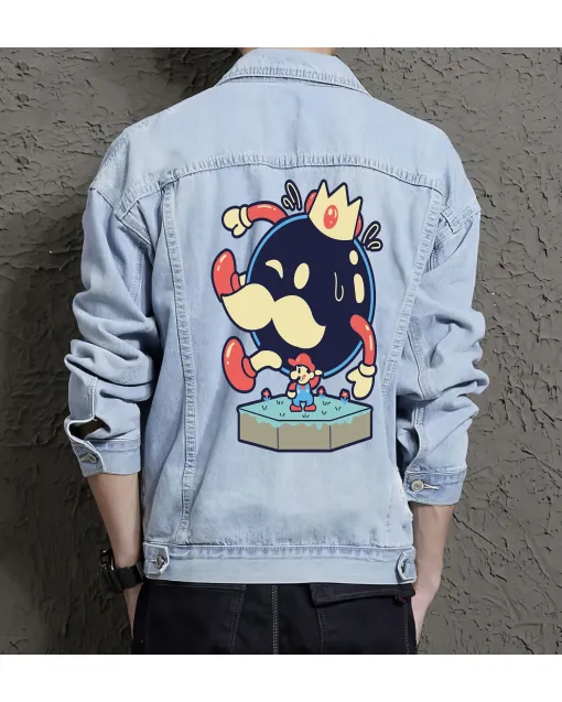 Super Mario King Bob Omb Denim Jacket For Men And Women