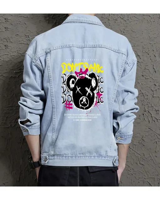 Teddy Bear Dont Panic Denim Jacket For Men And Women