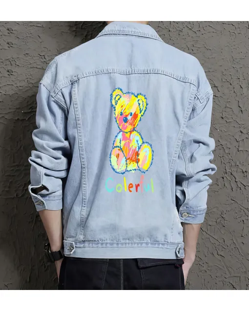 Teddy Bear Colorful Painting Denim Jacket For Men And Women