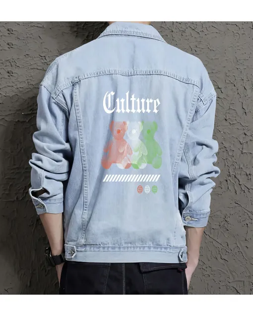 Teddy Bear Culture Denim Jacket For Men And Women