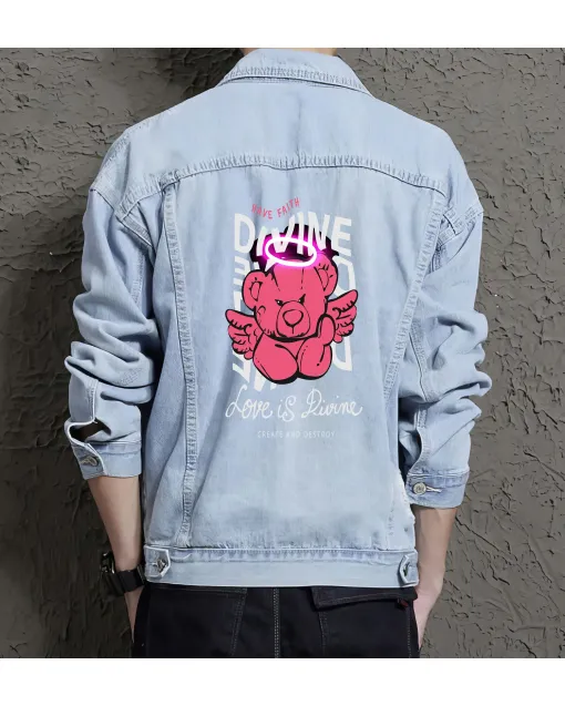 Teddy Bear Divine Faith Angelic Graphic Denim Jacket For Men And Women